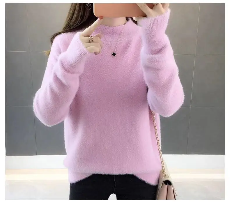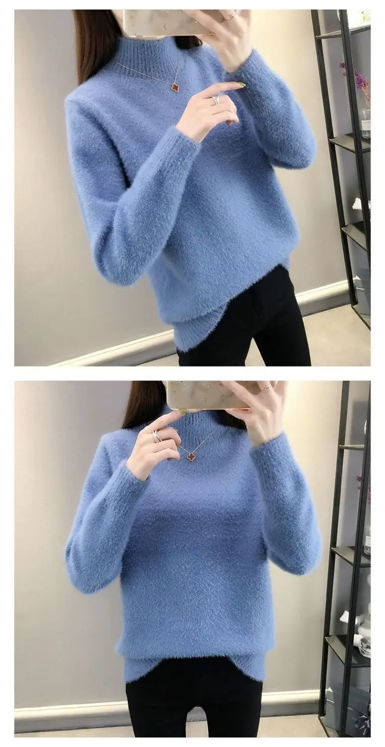 Оригинальный осенне-зимний базовый вязаный теплый свитер с высоким воротником