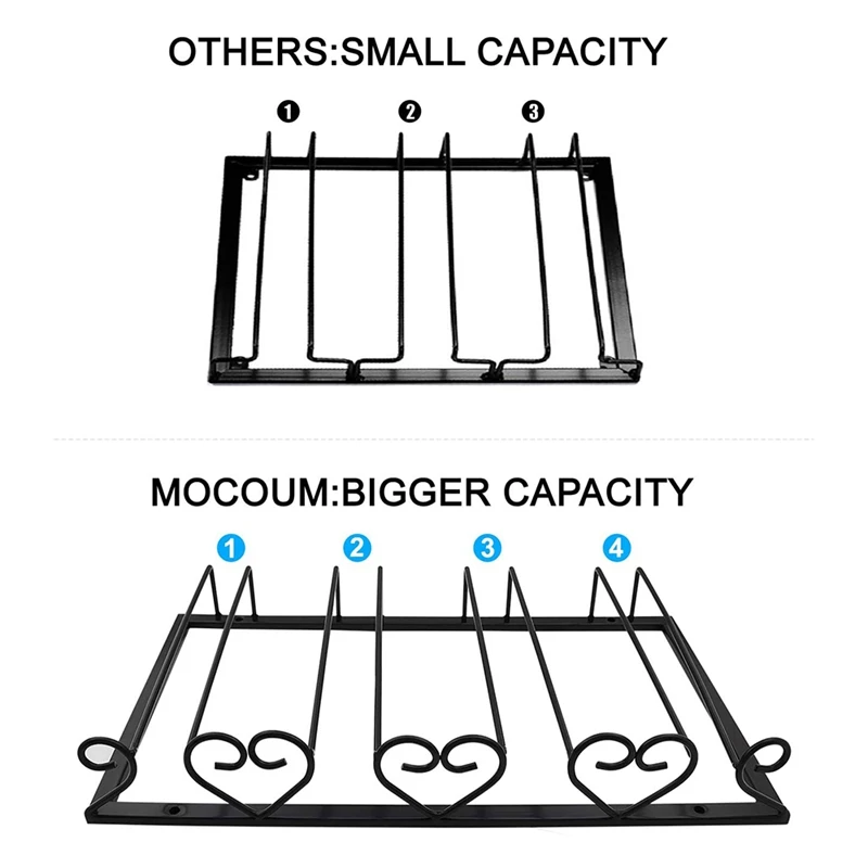 [Двойного предназначения качества]: держатель для бокалов под кабинет выполнен из высококачественного железа и разработан с высококачественное покрытие. Это эффективно предотвращает окисление и ржавчину стойки для бокалов. Прочный железный материал отличается прочностью и надежностью, что не причиняет хлопот в использовании вашей посуды.