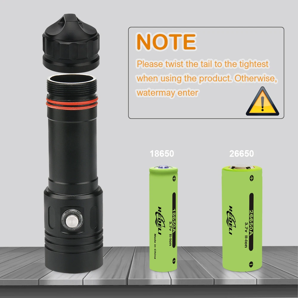 Battery type: 18650 OR 26650 rechargeable battery