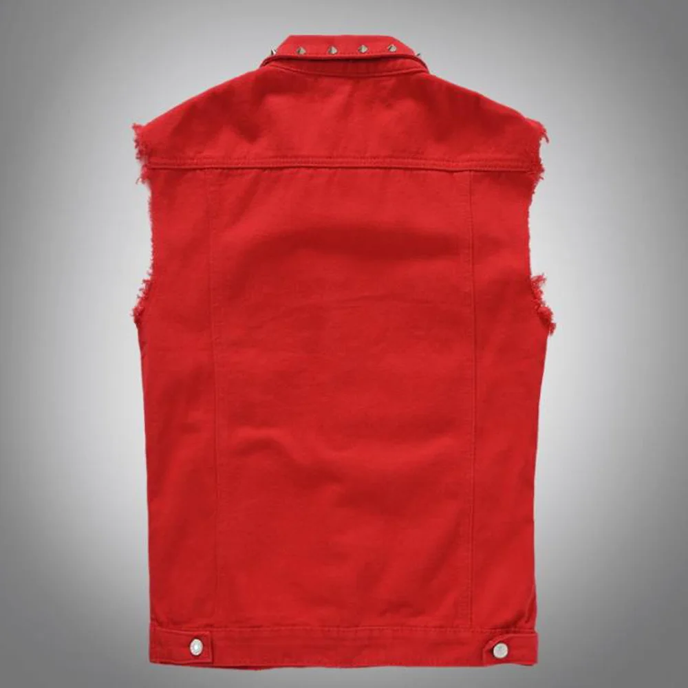 * Описание осеннего жилета: 2021 Модная Джинсовая куртка без рукавов, мужской жилет, топы, весна-осень, черный, красный, винтажный, в стиле панк-рок, с заклепками, ковбойский джинсовый жилет 5XL