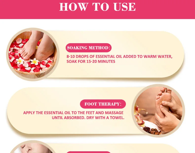 Добавьте 8-10 капель эфирного масла в теплую воду и Замочите в течение 15-20 минут.