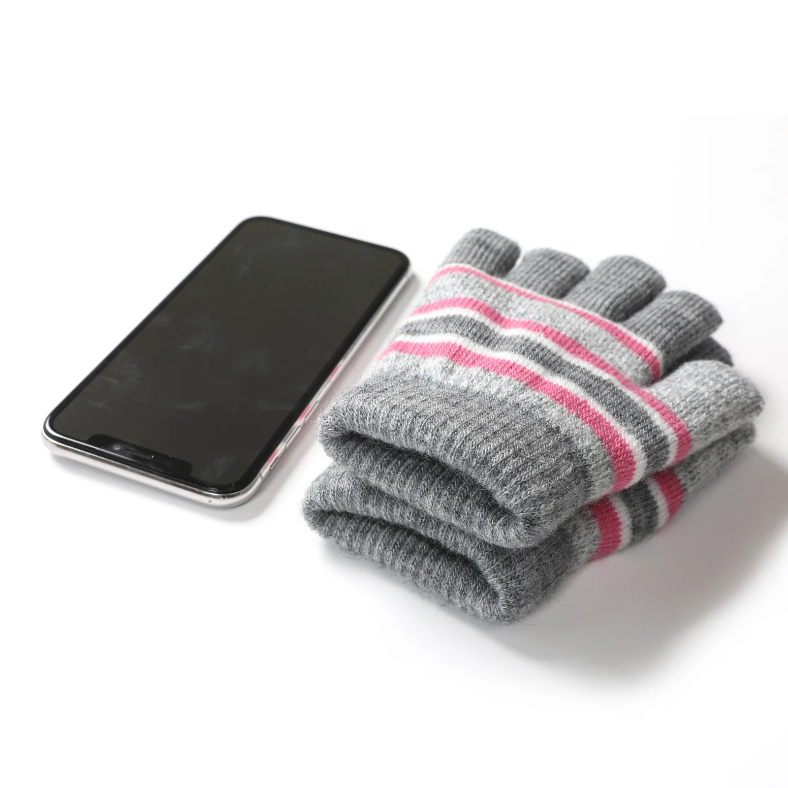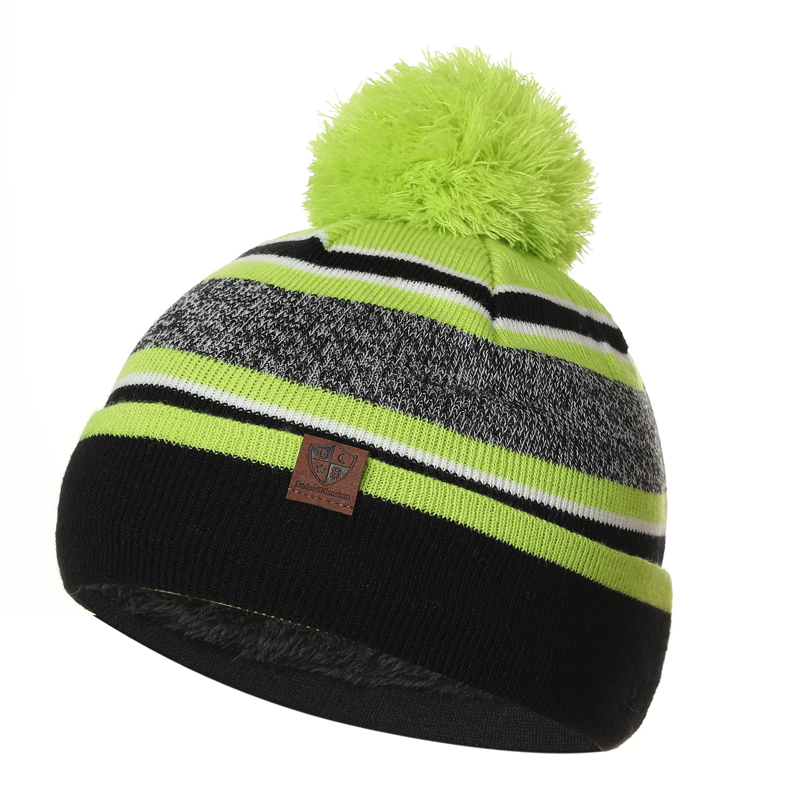 Особенности: головной убор с помпоном, дизайн в полоску, полный палец, теплый, эластичный