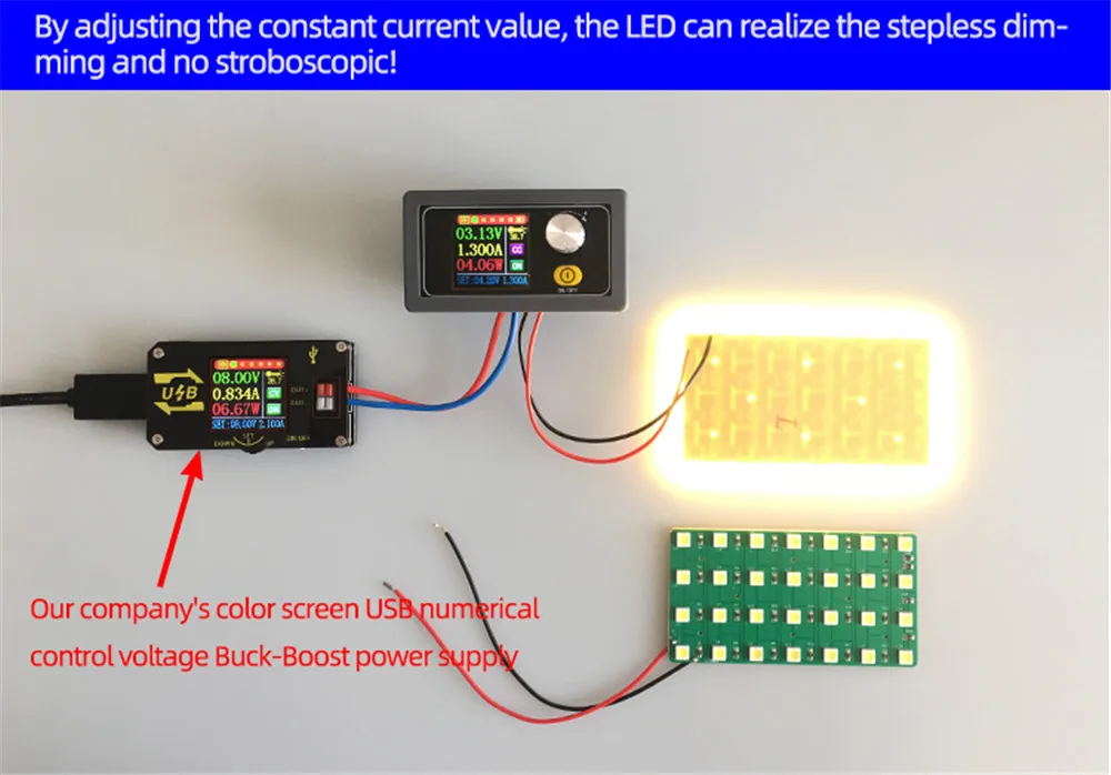 Этот продукт может регулировать значение постоянного тока (между 0-рабочим током) для реализации бесступенчатого затемнения светодиодный и без стробоскопа!