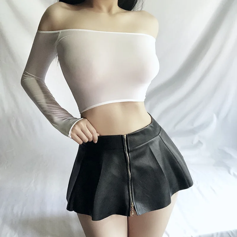 Сексуальная женская готическая Черная плиссированная юбка из искусственной кожи на молнии, трапециевидная мини-юбка с оборками, Клубная Сексуальная сценическая одежда, модель размера плюс F13