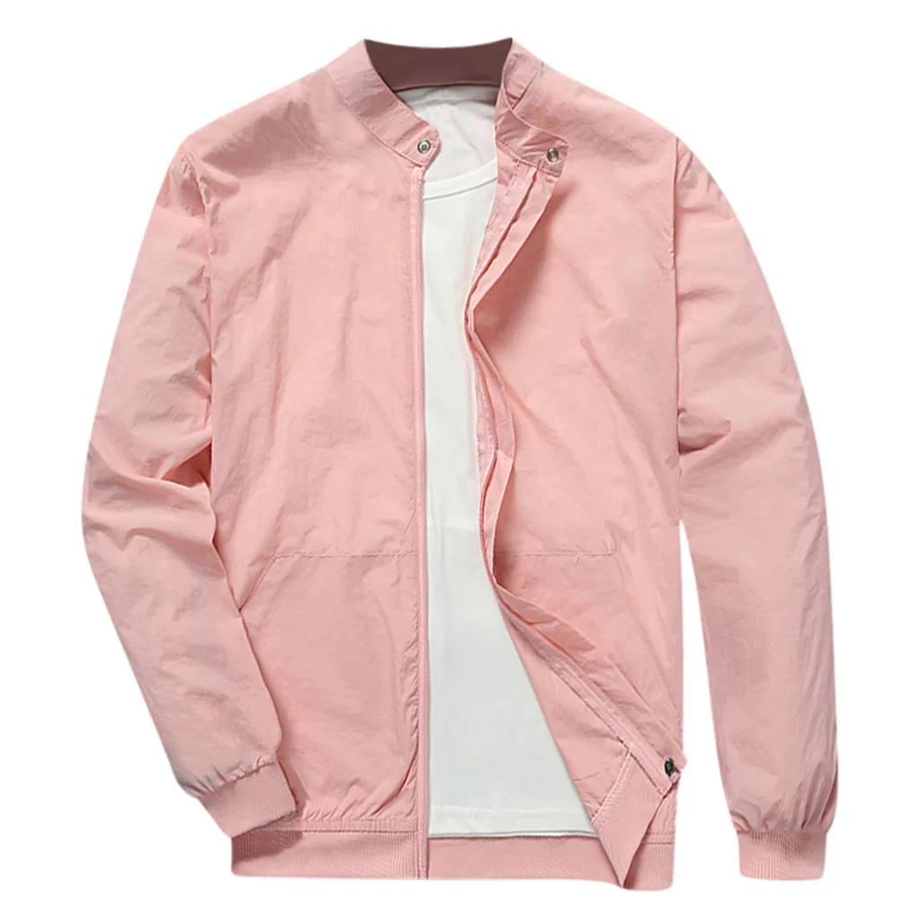 4 цвета в наличии, модная мужская повседневная однотонная куртка с широкой талией и длинным рукавом, куртка с воротником-стойкой
