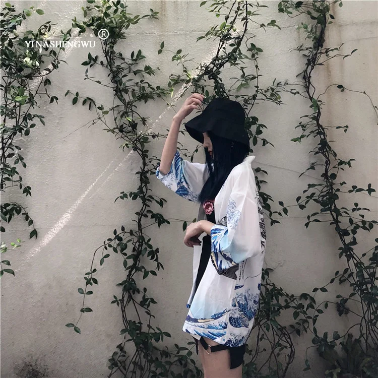 Kimonos женский японский кимоно кардиган косплей рубашка блузка для женщин японский юката женское летнее пляжное кимоно унисекс пальто