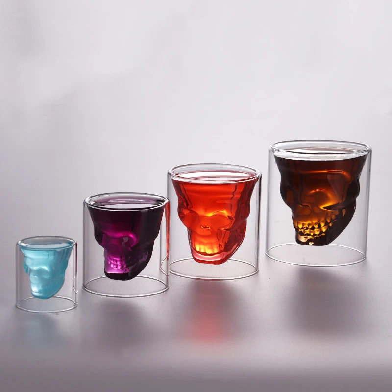 Материал: стекло Стиль: череп, креативный Емкость: 25 мл; 75 мл; 150 мл; 250 мл Цвет: прозрачный Подходит для: вина, пива, напитков, сока, воды, ликера, виски и т. Д. События: Хэллоуин, тематические/футбольные вечеринки, свадьба, бар или дом