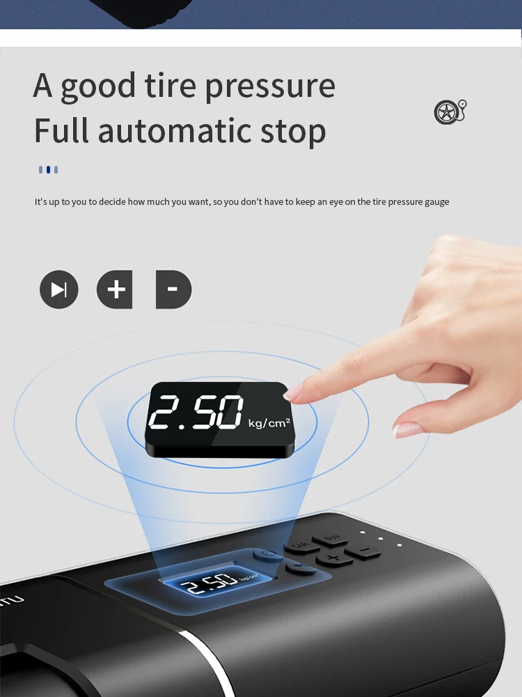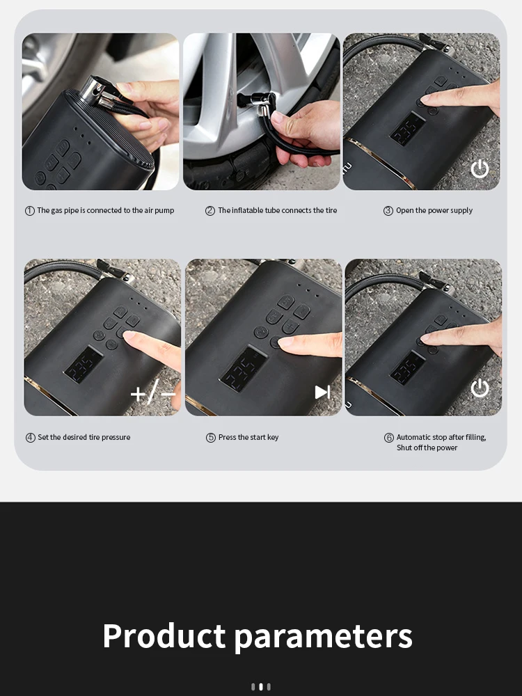 1. 2020 новый стиль, съемный насос для зарядки аккумулятора, высококачественные продукты с высоким внешним видом и уровнем; 2. Цифровой дисплей с экраном, предустановленное давление в шинах, полная остановка, не нужно смотреть; 3. Два наиболее используемых ключа автомобиля/внедорожника оснащены общим давлением в шинах, что более удобно выбирать одной кнопкой; 4. Три надувные сопла крепятся, которая используется для накачивания электрических автомобилей, мотоциклов, велосипедов, каяки, шарики и т. д.; 5. Компактный, портативный, легко надувается, не занимает слишком много места;
