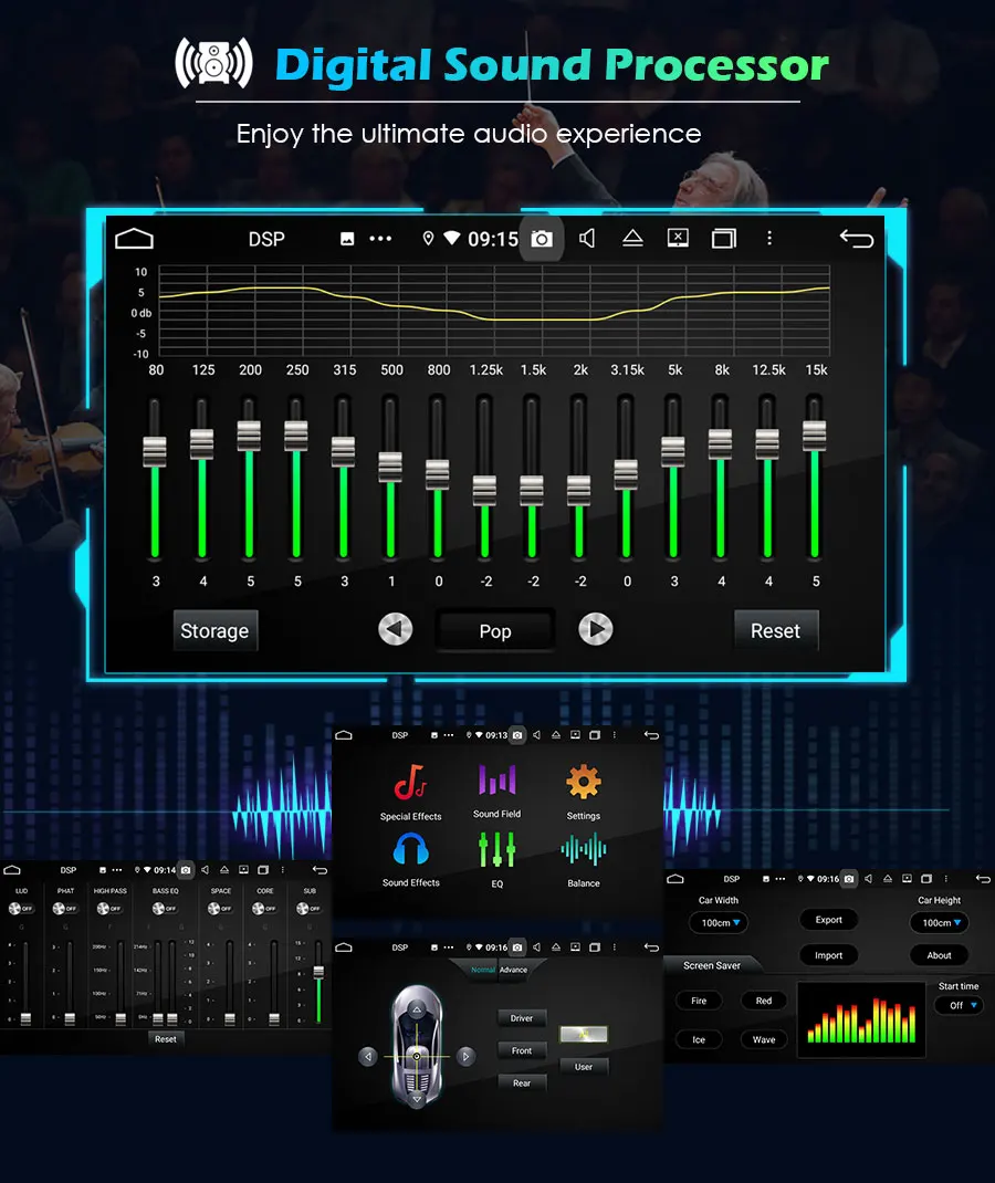 -Встроенная система усилителя DSP, которая обеспечивает идеальный звуковой эффект в вашем автомобиле.