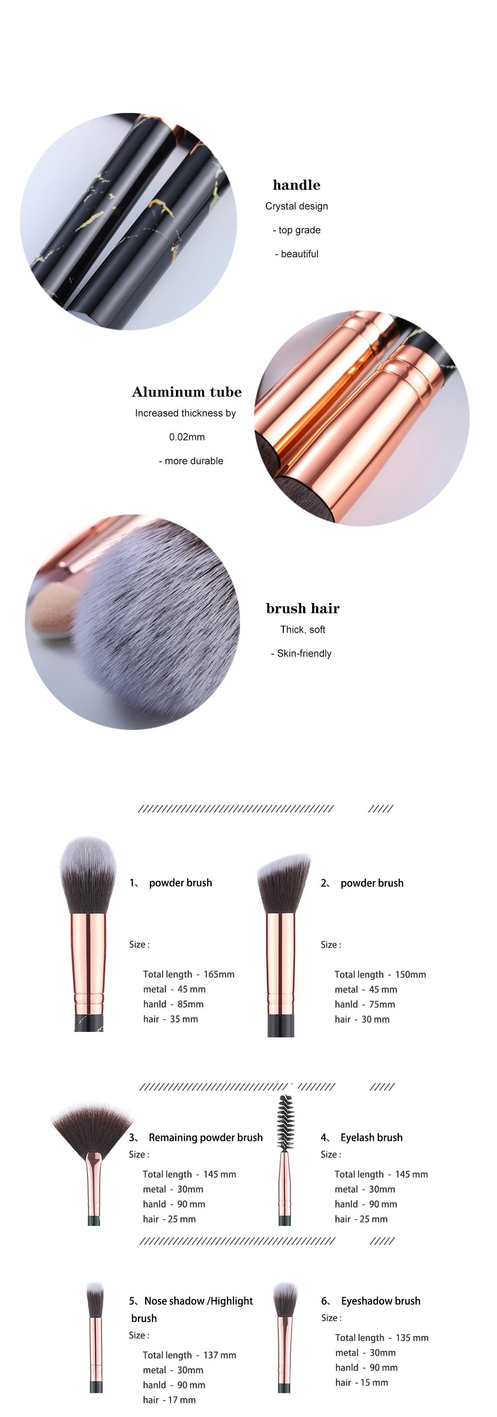 1. Высококачественная бамбуковая ручка и мягкие натуральные синтетические волосы