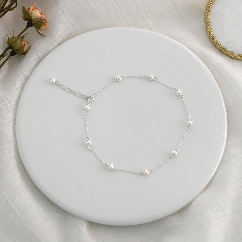 Женский ножной браслет Au750 цепочка из желтого золота 18 карат с резными бусинами 2
