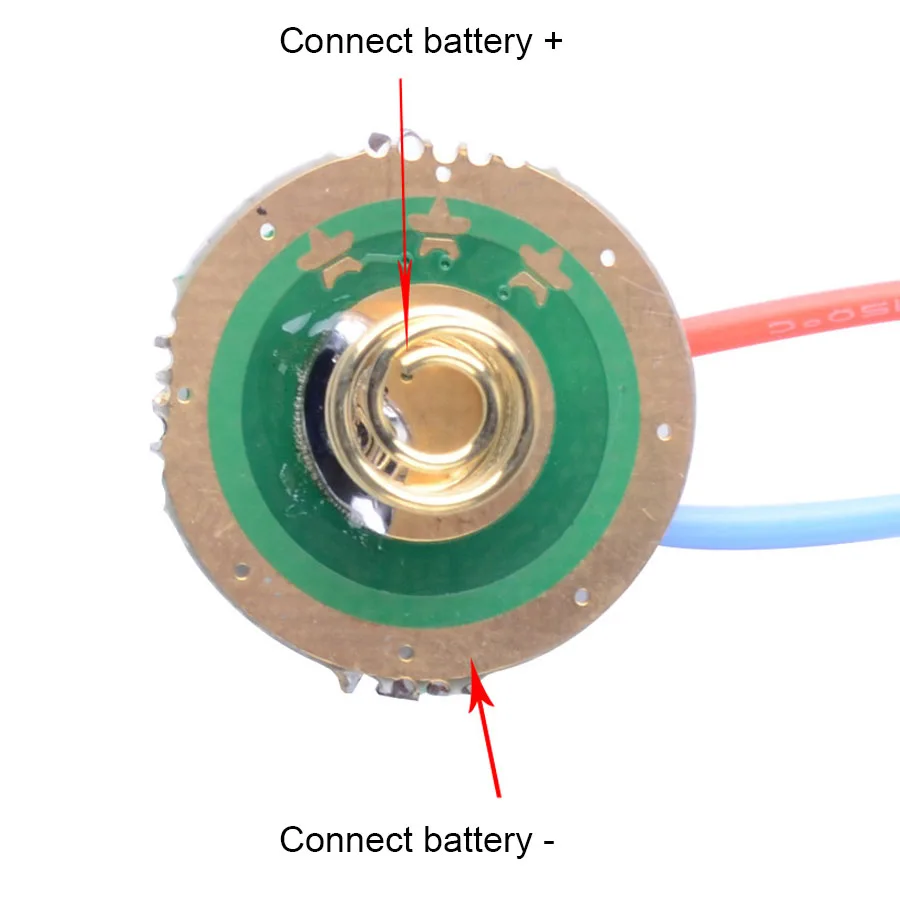 Максимальный ток на выходе 1.5A, (для T6, L2 U2 XPL светодиодный индикатор высокой мощности)Питание от 1x3,7 V 18650/26650 литий-ионная аккумуляторная батарея (2,7-4,5 V)2 режима: 100%-- 30%5 режимов: 100%-30%-10%-стробоскоп--- SOSДиаметр: 20 ммТолщина печатной платы: FR4 1,6 ммПосылка включает в себя: