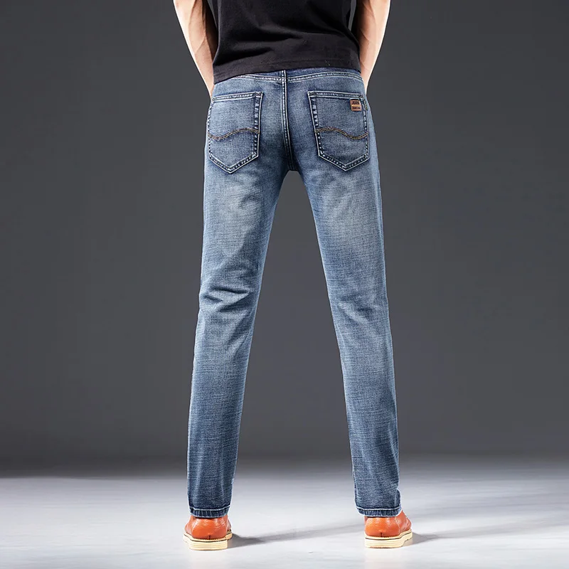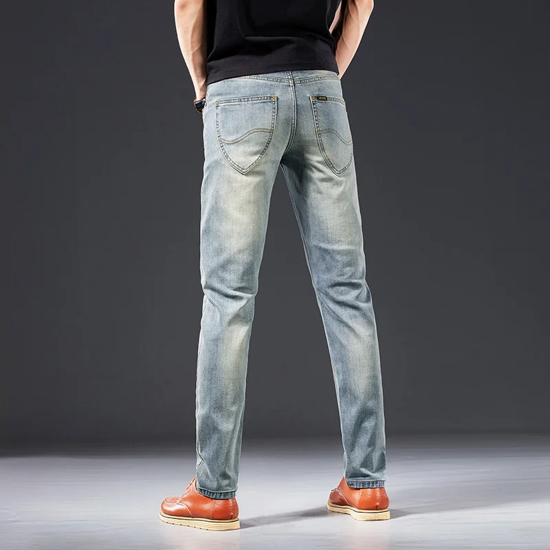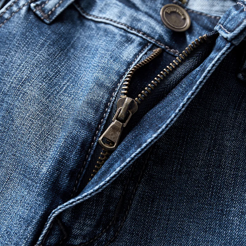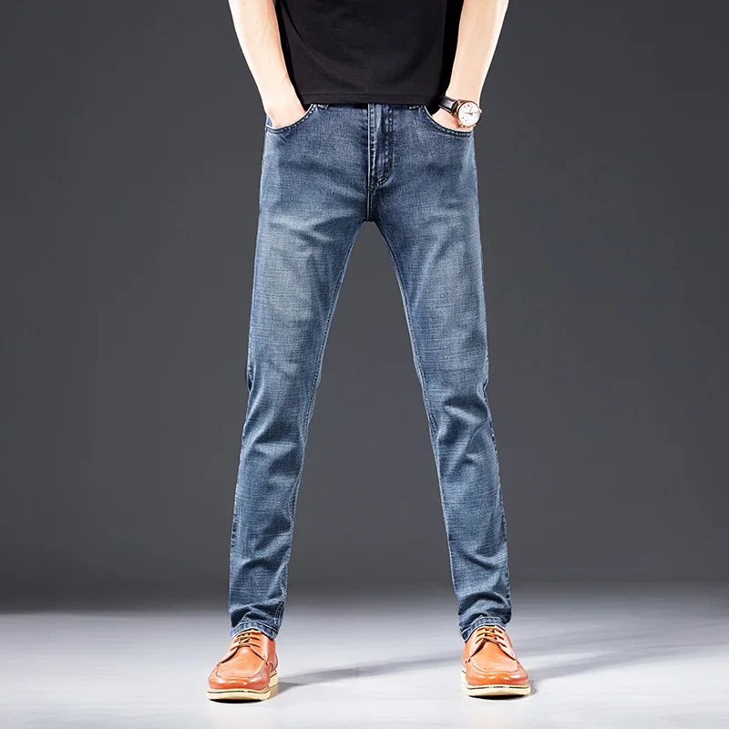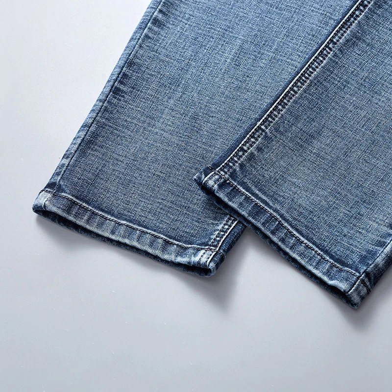 Потертые мужские джинсы в стиле Фаллоу ковбойские Стрейчевые Узкие Синие рваные
