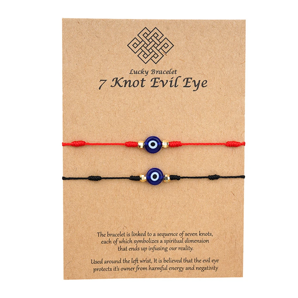2 шт., красные нити, браслеты со сглаза с картой, турецкий глаз, красный шнур, 7 узлов, браслет для пары, Парные вещи, ювелирное изделие, подарок