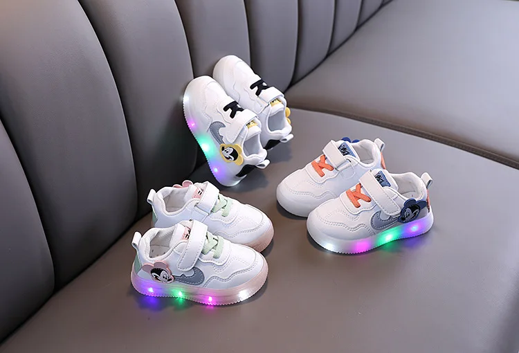 Детская светящаяся обувь Disney, детские кроссовки со светодиодсветильник кой для девочек, Chaussure Enfant, повседневная обувь с Микки Маусом для маленьких мальчиков, От 1 до 6 лет