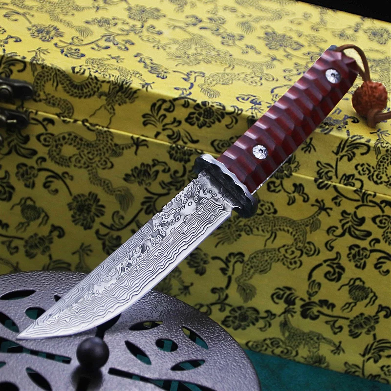 Название:Самурайский supreme -BПроисхождение: Янцзян, ГуандунОбщая длина: 24 смДлина лезвия: 9,8 смШирина лезвия: 2,5 смТолщина лезвия: 0,4 смМатериал: дамасская стальПоверхность: дамасский узорРучка: Высококачественная веточка из кислотного дерева + Дамасская стальВес: 280 гТвердость: 60 HRCОболочка: отборная кожа