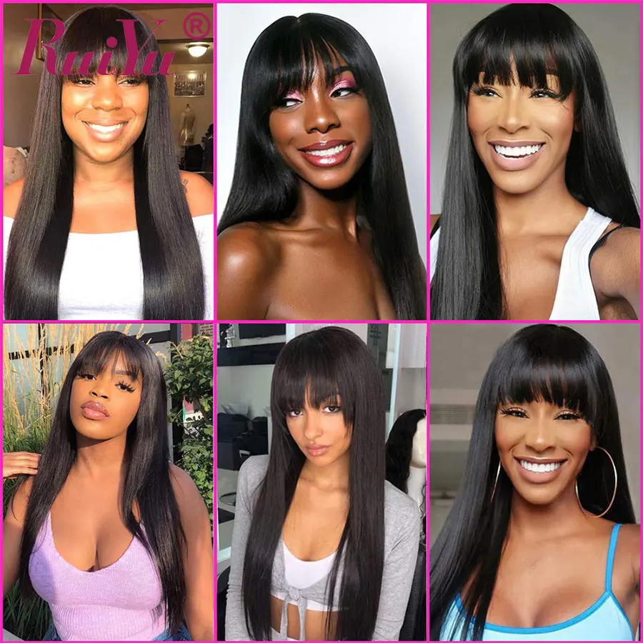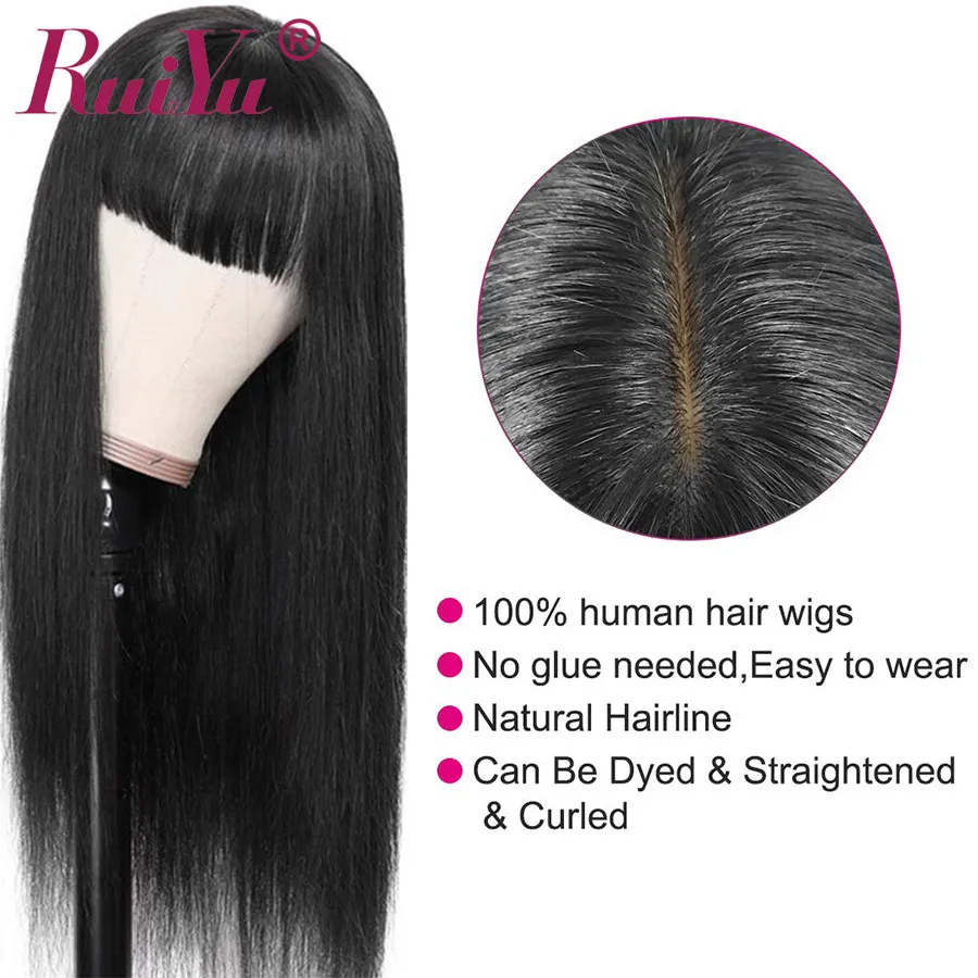 Парики из человеческих волос для женщин, прямые парики с челкой, средняя часть, искусственная шелковая основа, искусственные волосы на волосистой основе, бразильские натуральные волосы, парики из человеческих волос