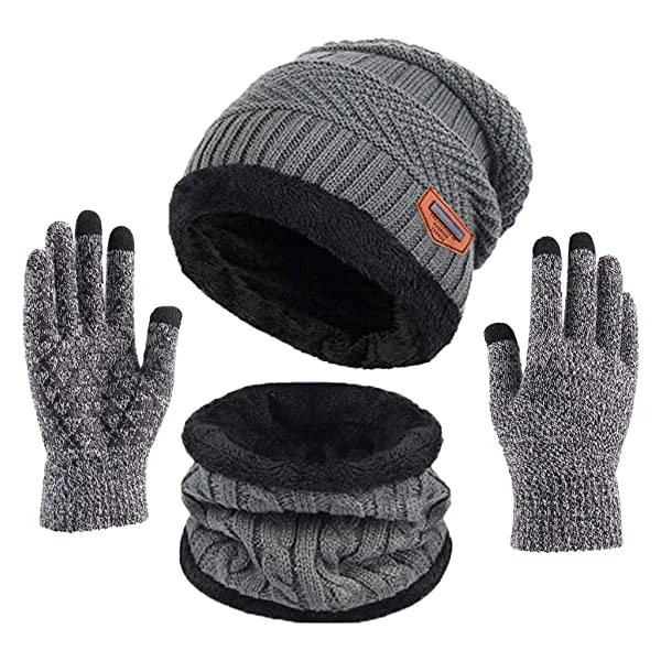 3. Идеальный Зимний вязаный комплект сохраняет тепло зимой-вязаная шапка довольно плотная и теплая, перчатки с сенсорным экраном, И очень толстая подкладка из флиса, которую можно подтягивать поверх лица.
