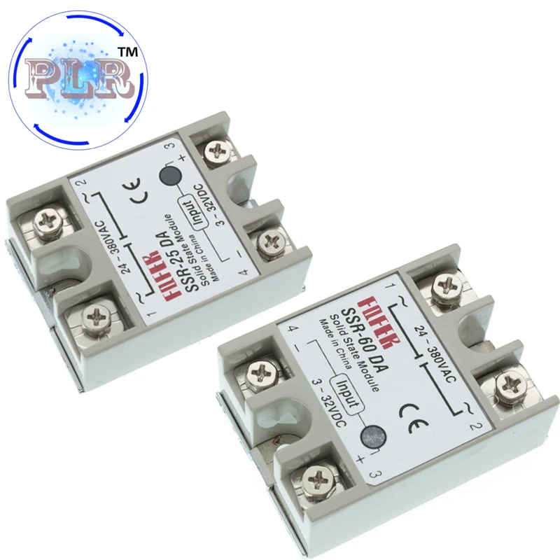 SSR-25DA Input voltage: 3-32VDC Output voltage: 24-380VAC Output current: 25A Working voltage: 250V On voltage: ≤1V One-off Time: ≤10ms Off leakage Current: ≤2mA Color: White Item size: 60*45*23mm Net weight: 97g Package weight: 106g