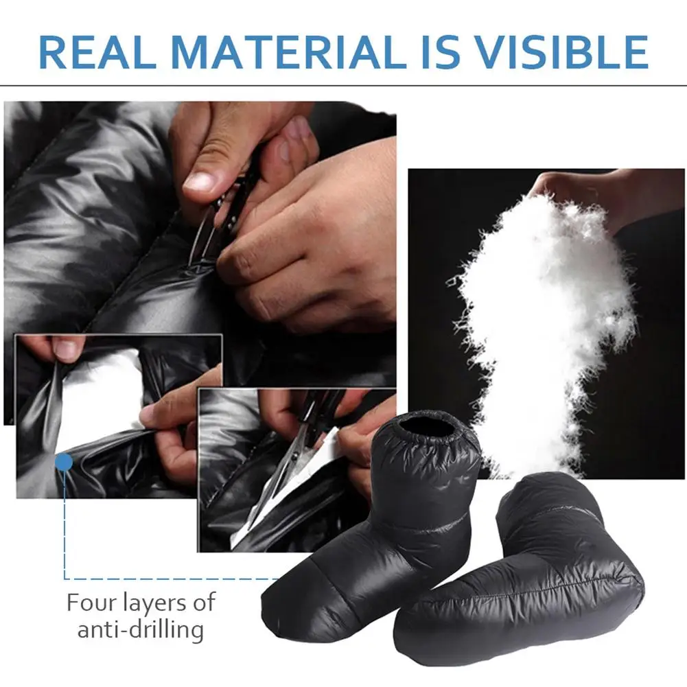 5. Многофункциональное использование: в холодную зиму Этот продукт можно использовать в качестве домашних тапочек, особенно для пожилых людей и людей, боящихся простуды. Если вы рюкзак, Эти пуховые носки-лучший выбор. Просто Принесите их и наслаждайтесь кемпингом холодной зимой.