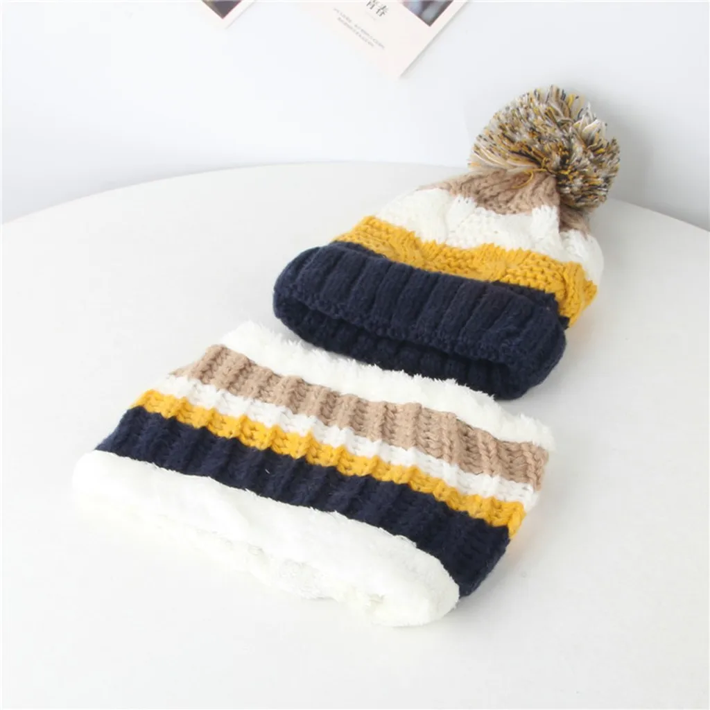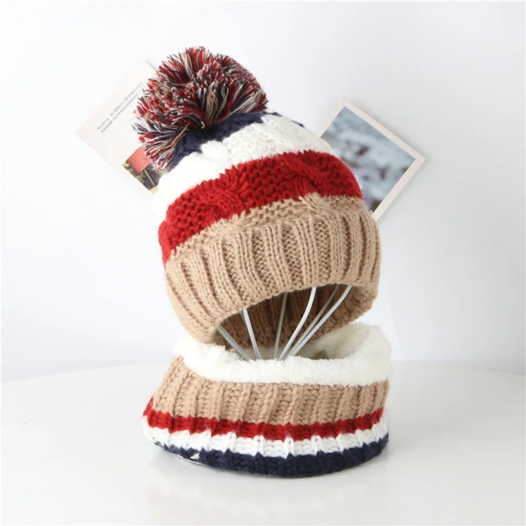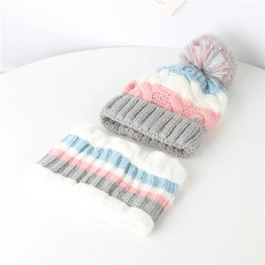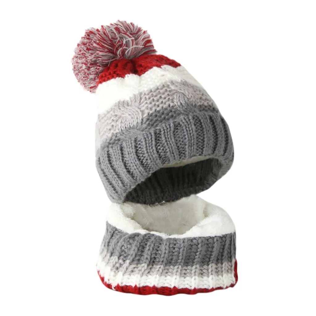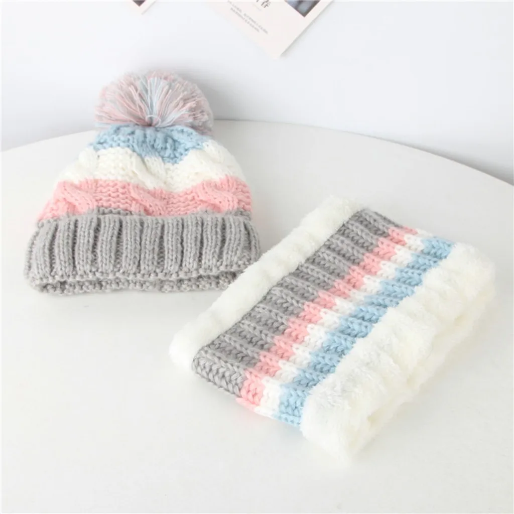 Малыш Для маленьких мальчиков и девочек Детские вязание крючком вязаная шапка бини с маленькими пушистыми помпончиками набор из шапки и шарфа; Костюм