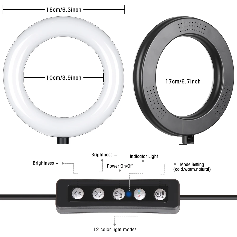 Разъем USB Power ed: Кольцевой светильник может быть подключен к компьютеру, мобильному источнику питания и т. д.