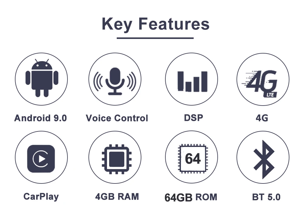 12) Support multiple options like TPMS, Rear Camera, DAB+ receiver, Rear View Camera, Digital TV Receiver, DVR/Aux, etc.