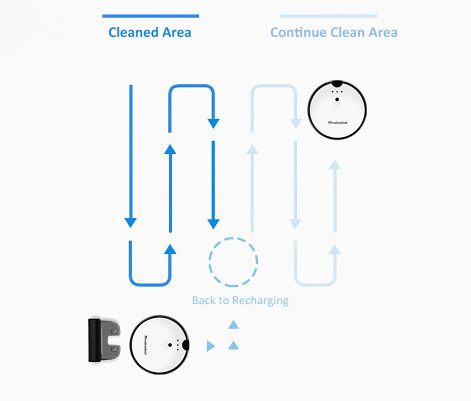Когда батарея разрядится, Робот автоматически вернется к зарядной док-станции для подзарядки. После полной зарядки устройство вернется к очистке.