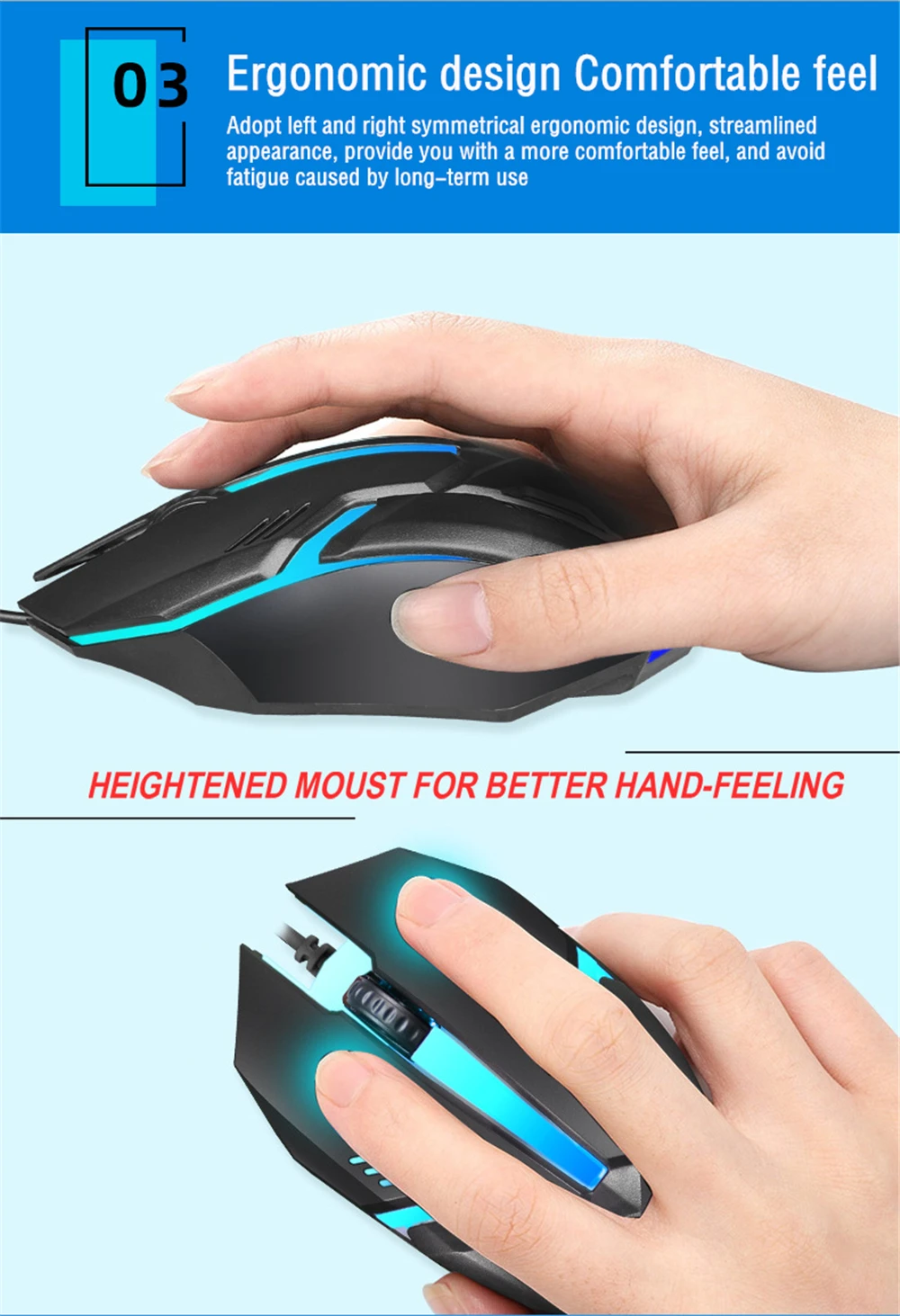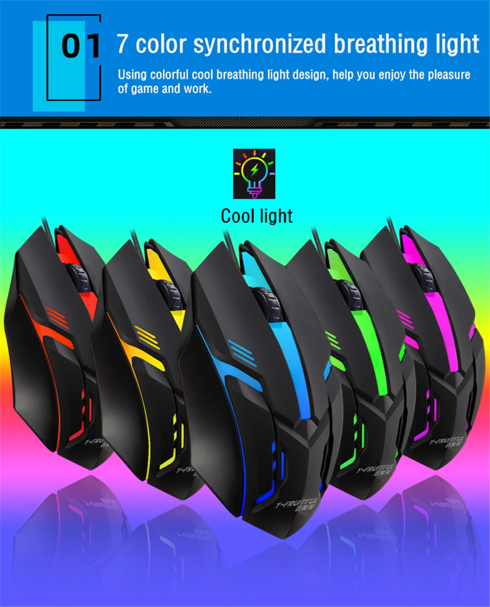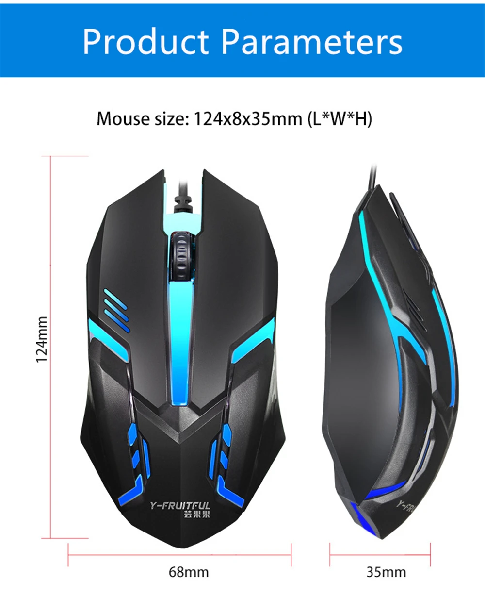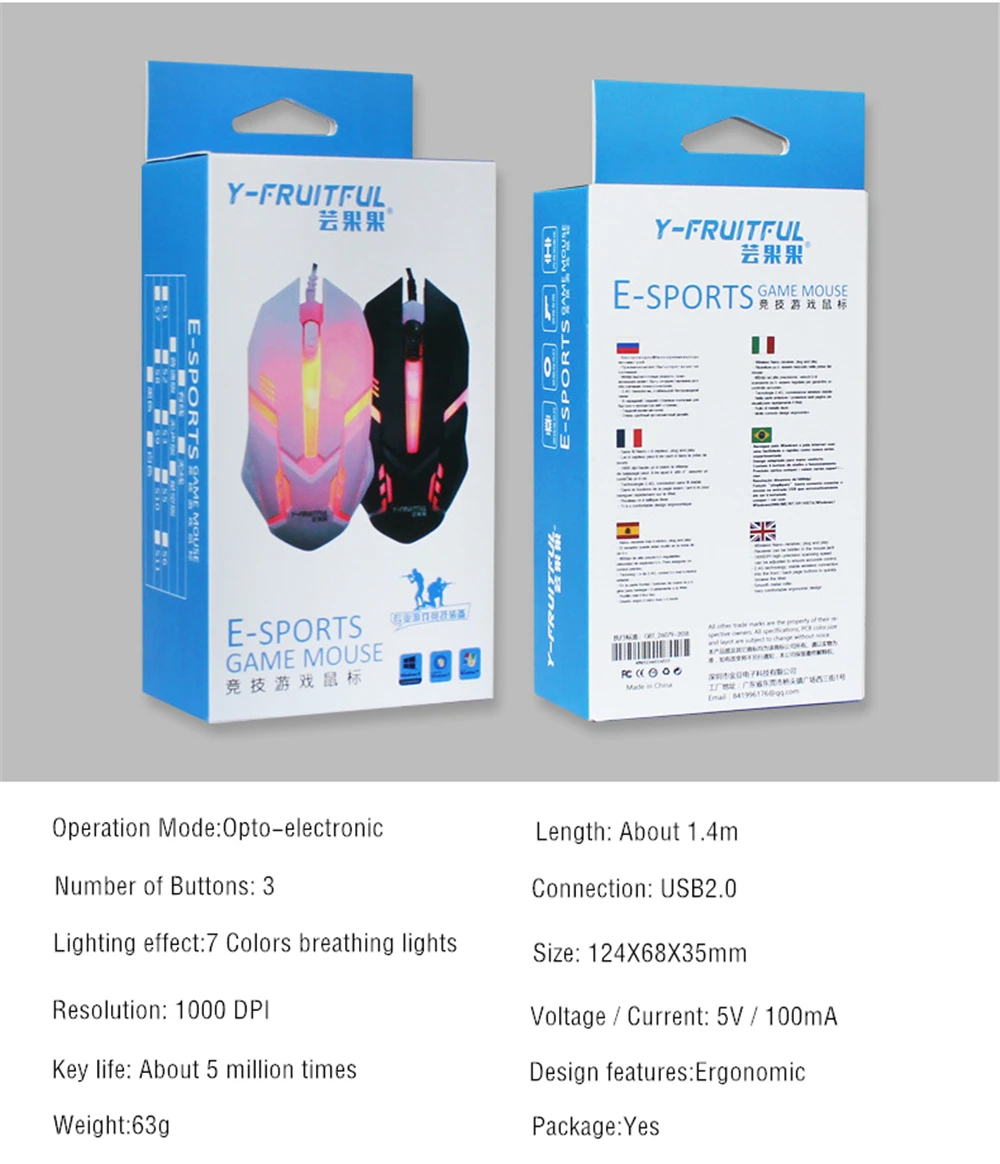 Характеристики Тип:Проводная игровая мышь Режим работы: оптоэлектронный Подключение: USB2.0 Количество кнопок: 3 Разрешение: 1000 DPI Напряжение/ток: 5 В/100 мА Срок службы: около 5 миллионов нажатий Длина кабеля: 1,4 м Светильник: Дыхательные огни 7 цветов Особенности дизайна:ЭргономичныйДизайн Применение: Для настольного компьютера, ноутбука, ноутбука Цвет: черная/белая мышь Вес: 63 г Размер продукта: 124*68*35 мм Посылка: Да