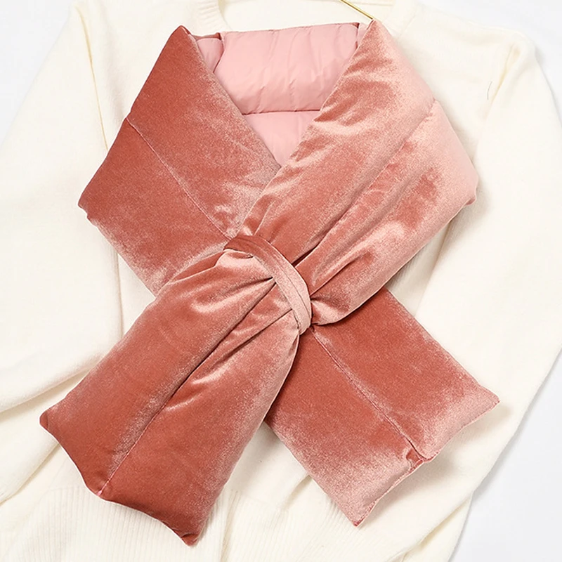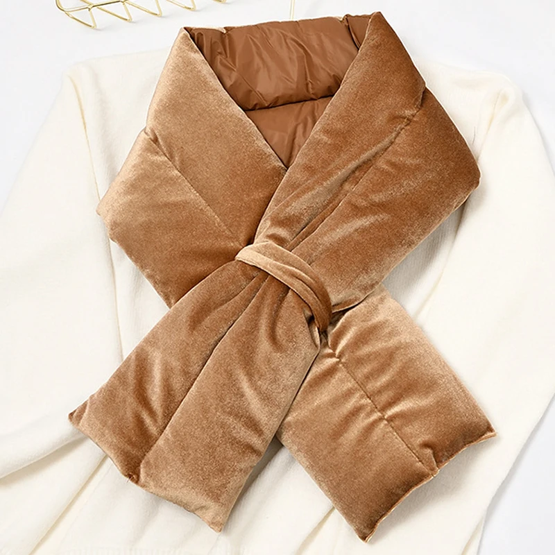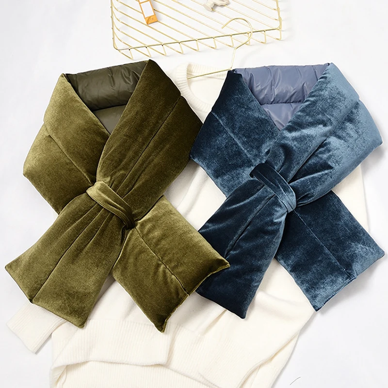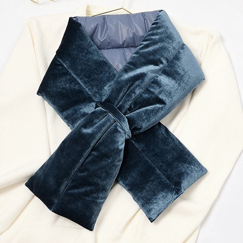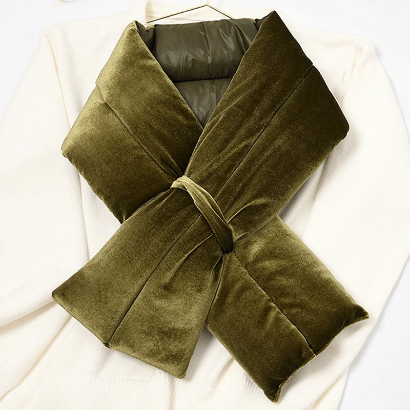 Роскошный однотонный зимний пуховый хлопковый шарф Воротничок для женщин Vevet шейный платок с крестиками Sjaals Voor Dames Szalik Zimowy Bufandas Mujer Encharpe для женщин