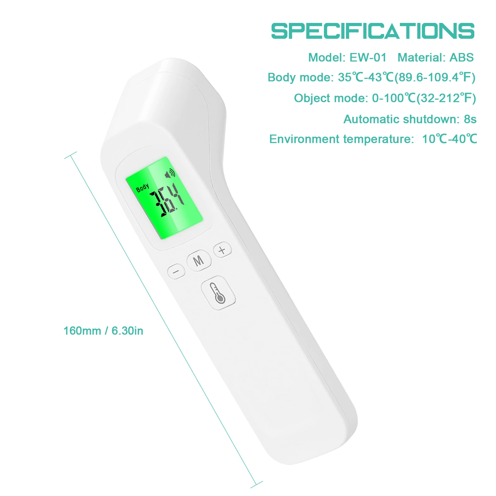 Non-contact type measurement design, no contact with human skin, avoids crossinfection.