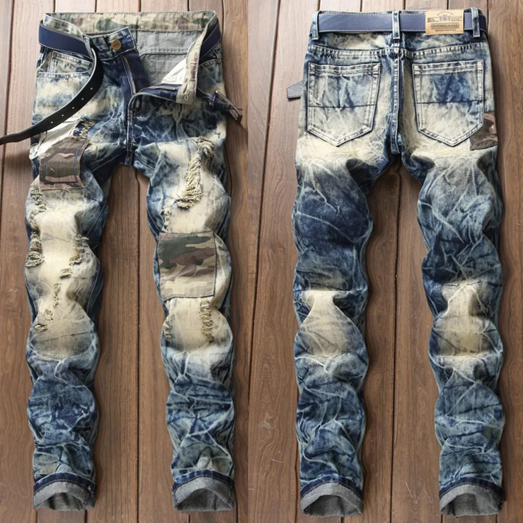 Мужские эластичные рваные обтягивающие байкерские джинсы с потертостями, облегающие джинсовые штаны