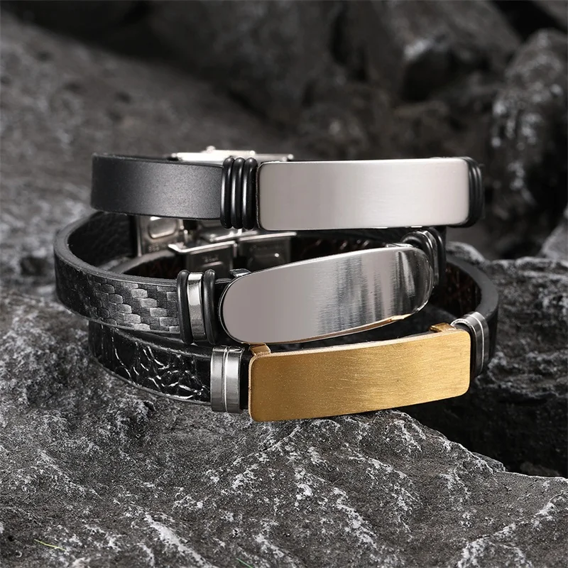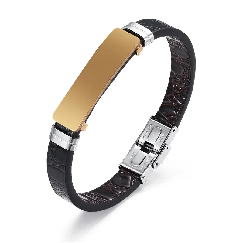 Мужской кожаный браслет с выгравированным именем AZIZ BEKKAOUI, черный, золотой браслет из нержавеющей стали, винтажные мужские ювелирные изделия, подарок для друга