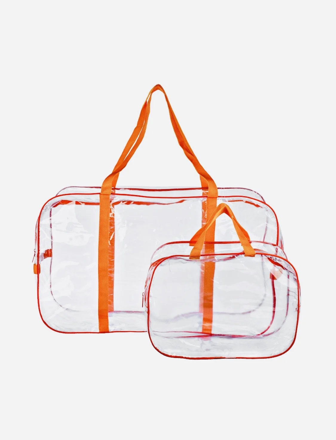 Комплект состоит из двух прозрачных сумок для роддома. Основная сумка-55*33*24,дополнительная-32*23*17