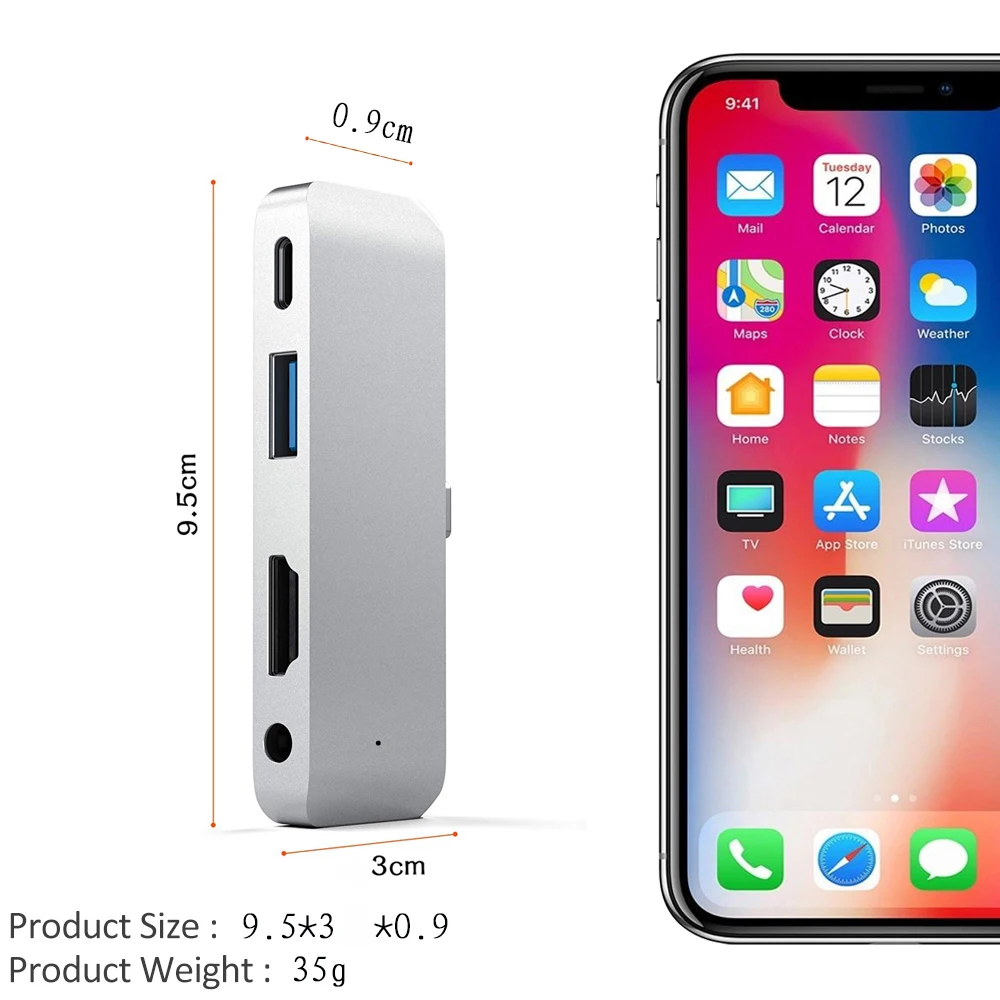 -Featuring stunning 4K HDMI display (30Hz), -Designed for the new 2020 iPad Pro -USB-C PD 3.0 charging, USB 3.0 port 3.5mm headphone jack, all over a single USB-C connection. -With its plug and play design, it is easier than ever to connect all your devices on-the-go. Packages: 1 x USB hub