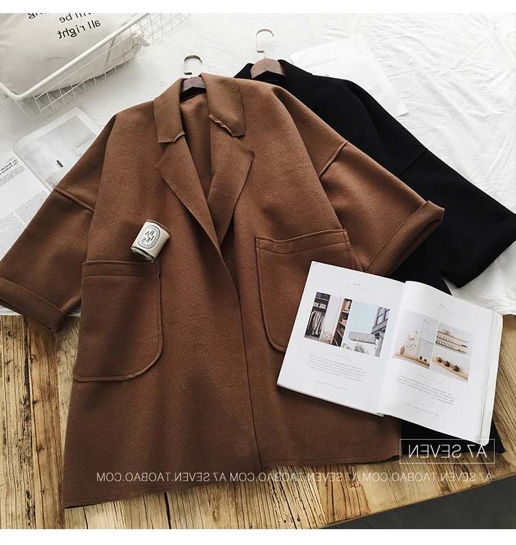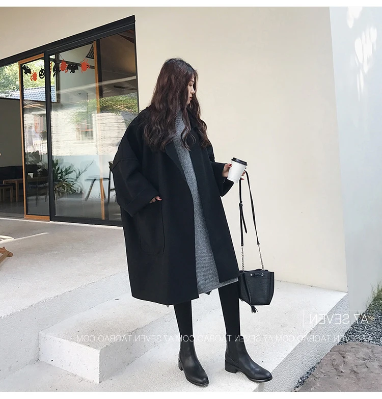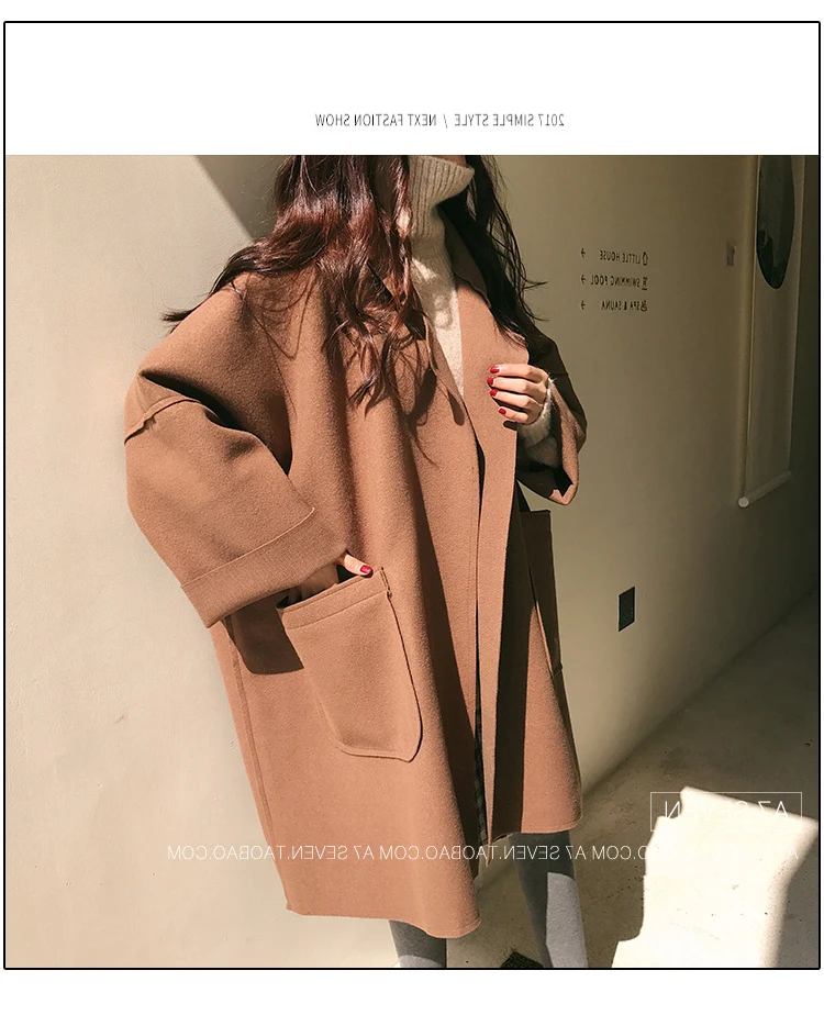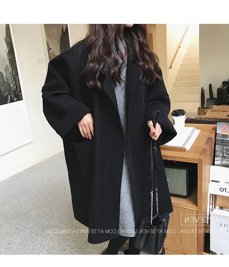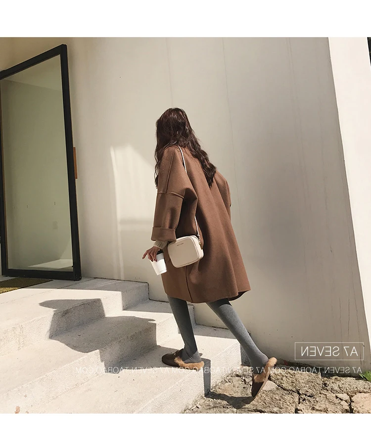 Женская шерстяная куртка средней длины свободная накидка в Корейском стиле