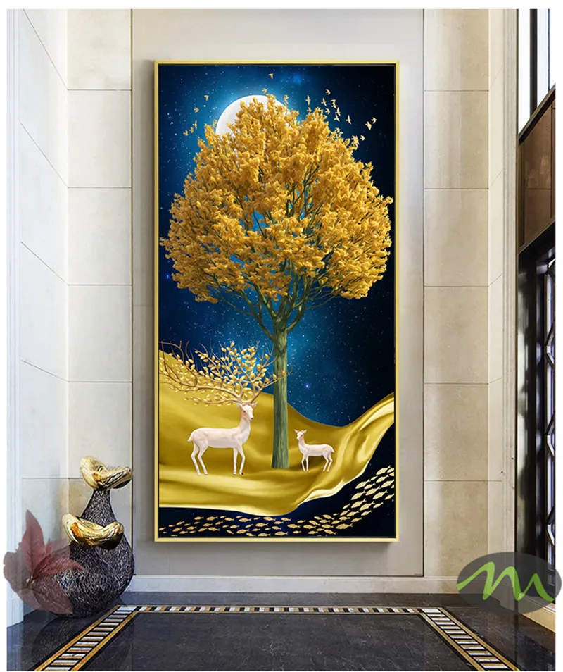 Абстрактный золотой Холст олень живопись Tableaux большой плакат и печать для гостиной скандинавский Большой Настенный художественный декор с вешалкой 6-18