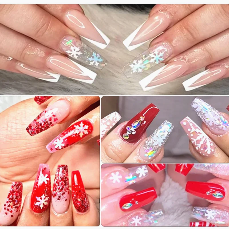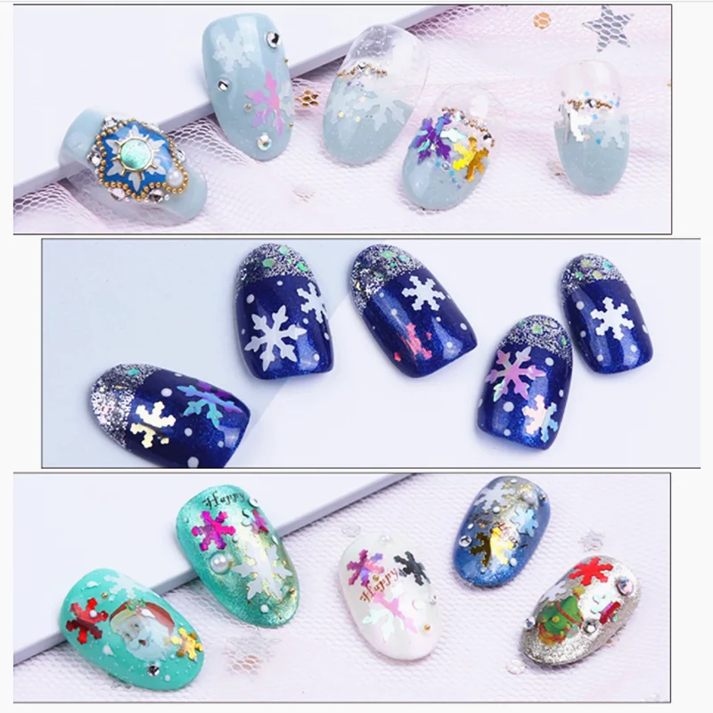 1 сумка голографические рождественские лазерные снежинки для ногтей блестки 3D для дизайна ногтей блестящие лазерные AB Серебряные Блестки для маникюра украшения 10 г