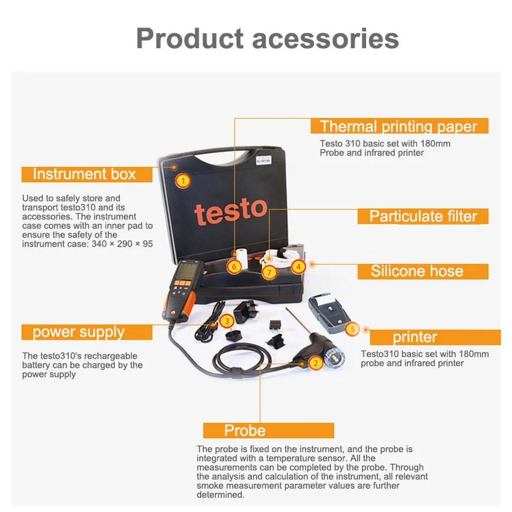Testo 310 портативный анализатор дымовых газов от 0 до 4000 Ppm O2/CO эффективность сжигания газа детектор котла термопары Длинный зонд набор