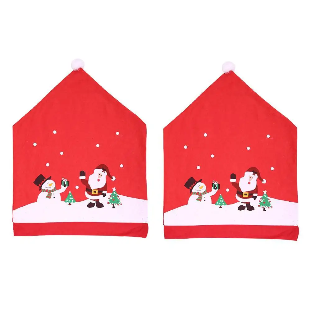 Рождество мультфильм Санта Клаус Снеговик Рождественская елка напечатанная Нетканая Ткань чехлы для стульев табуреты шляпы деформации