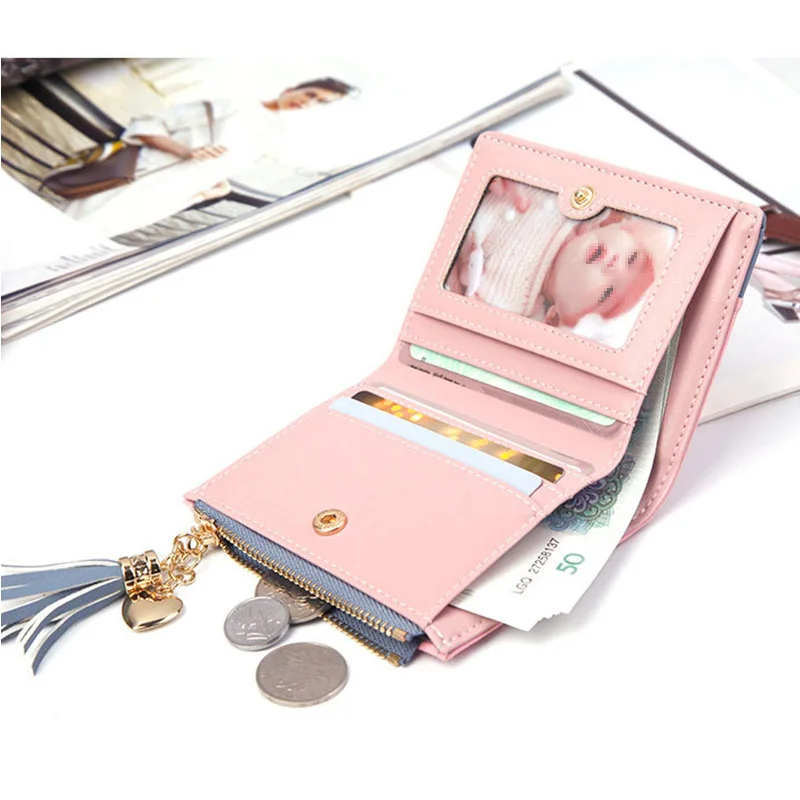 Женский милый короткий кожаный кошелек, кредитный держатель для карт, кошелек на молнии, портмоне с окошком для удостоверения личности