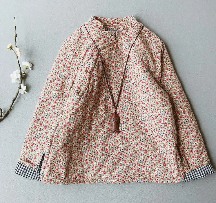 Женская парка с цветочным принтом, зимняя теплая куртка в китайском стиле ретро из хлопка и льна с хлопковой подкладкой и длинными рукавами на пуговицах, 2020