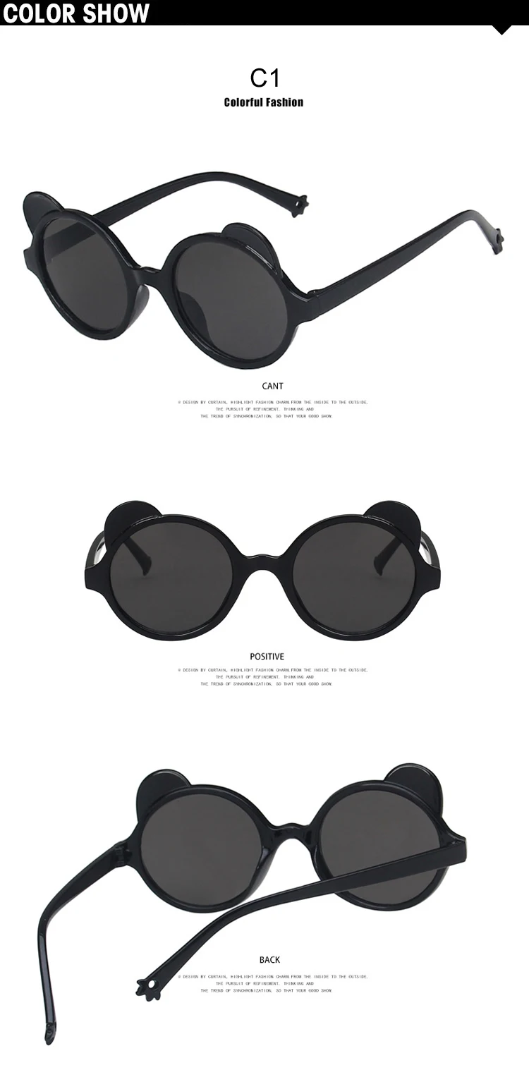 Очки солнцезащитные детские круглые винтажные в форме мультяшного медведя с