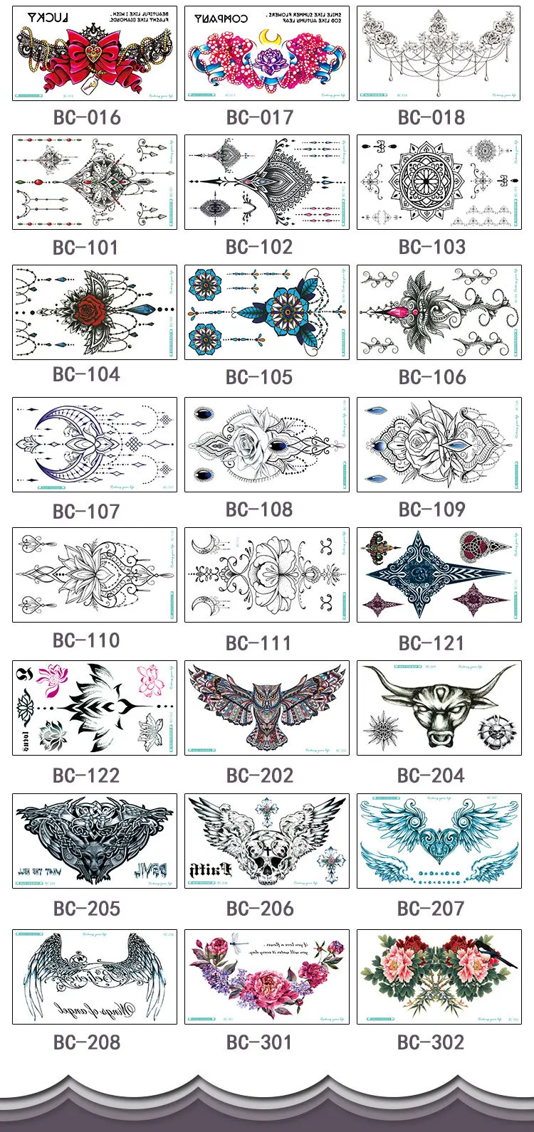 Размер: 24x13,5 см за штуку Руководство пользователя: 1. Вырежьте татуировку по выбору и удалите прозрачный лист. 2. Поместите тату лицом вниз на кожу. 3. Тщательно намочите татуировку губкой. 4. Через 20-30 секунд аккуратно Снимите бумажную подложку. 5. Дайте тату высохнуть. Для удаления: 1. Тату Dab со втирающим спиртом или детским маслом. 2. Подождите 10 секунд. 3. Затем аккуратно и многократно растереть большим количеством растирающего спирта или детского масла до перемещения. Предупреждение: 1. Прекратить использование при появлении раздражения. 2. Не наносите на глаза. 3. Не для детей младше 3 лет.