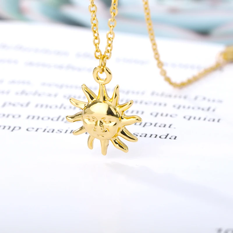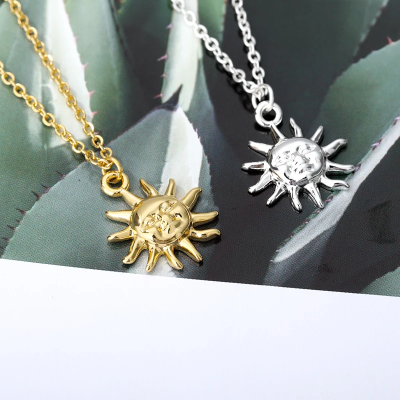 Женское винтажное ожерелье в стиле бохо, ожерелье-чокер со смайликом и подвеской в форме солнца, из нержавеющей стали
