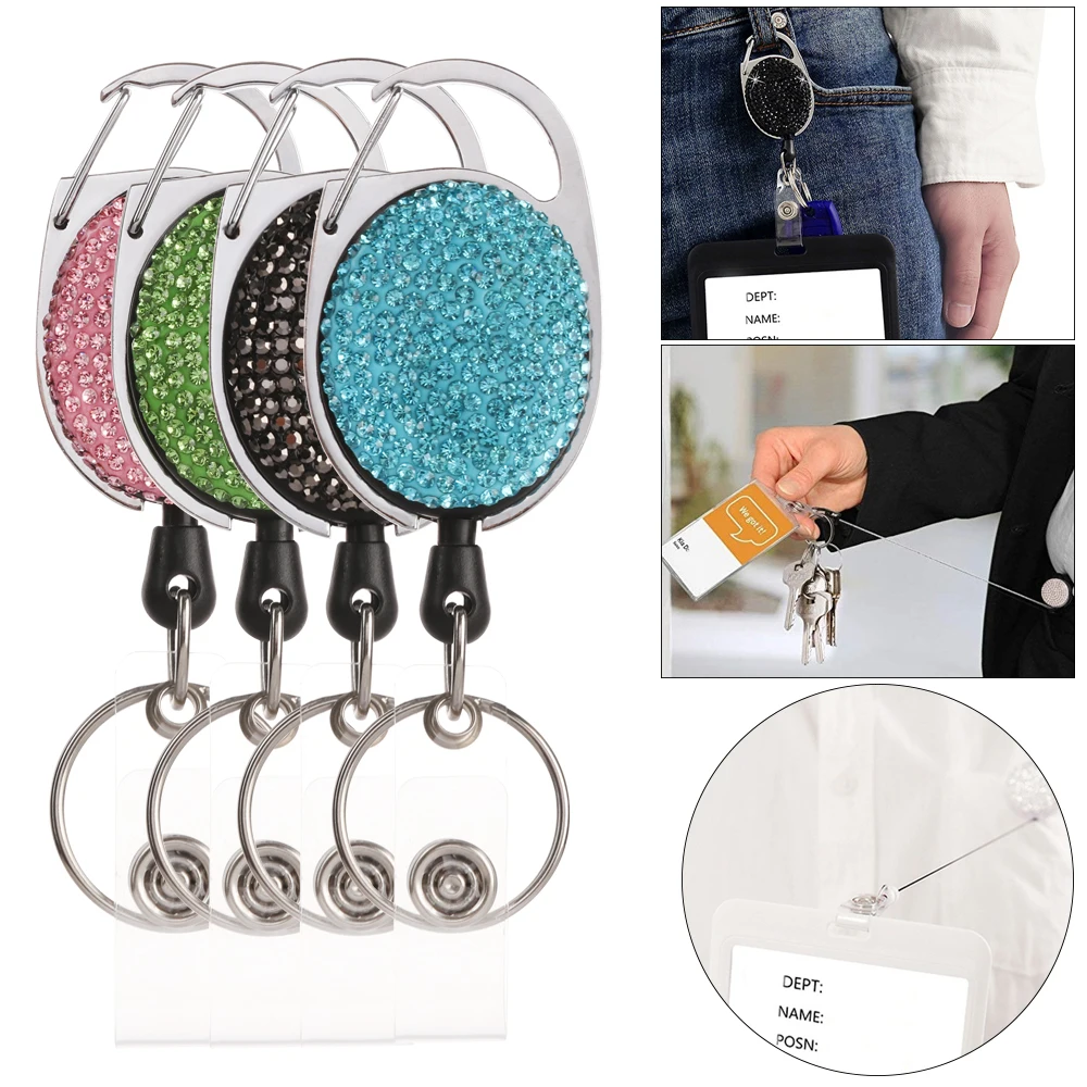 Хит продаж выдвижной брелок с алмазным рисунком клипса бейдж удостоверение