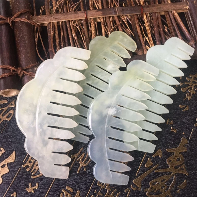 1. Изготовлено из чистого натурального нефрита, изысканное ремесло для резьбы, соскабливающая доска в форме гребня, антибелая расческа для волос Xiuyu, вы можете глубоко массировать голову, снять напряжение мышц.