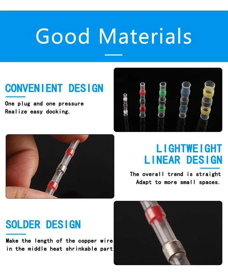 Водонепроницаемые термоусадочные клеммы для пайки, изолированные водонепроницаемые соединительные соединители для стыковой проволоки, электрические клеммы
