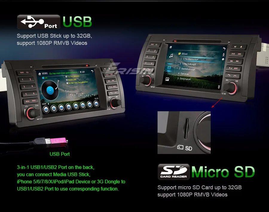 Это новый дизайн все-в-одном для BMW 5er E39/E53 с декодером CanBus (стоимость GBP35 на рынке). Процессор MTK3360 800 МГц, Windows 6,0