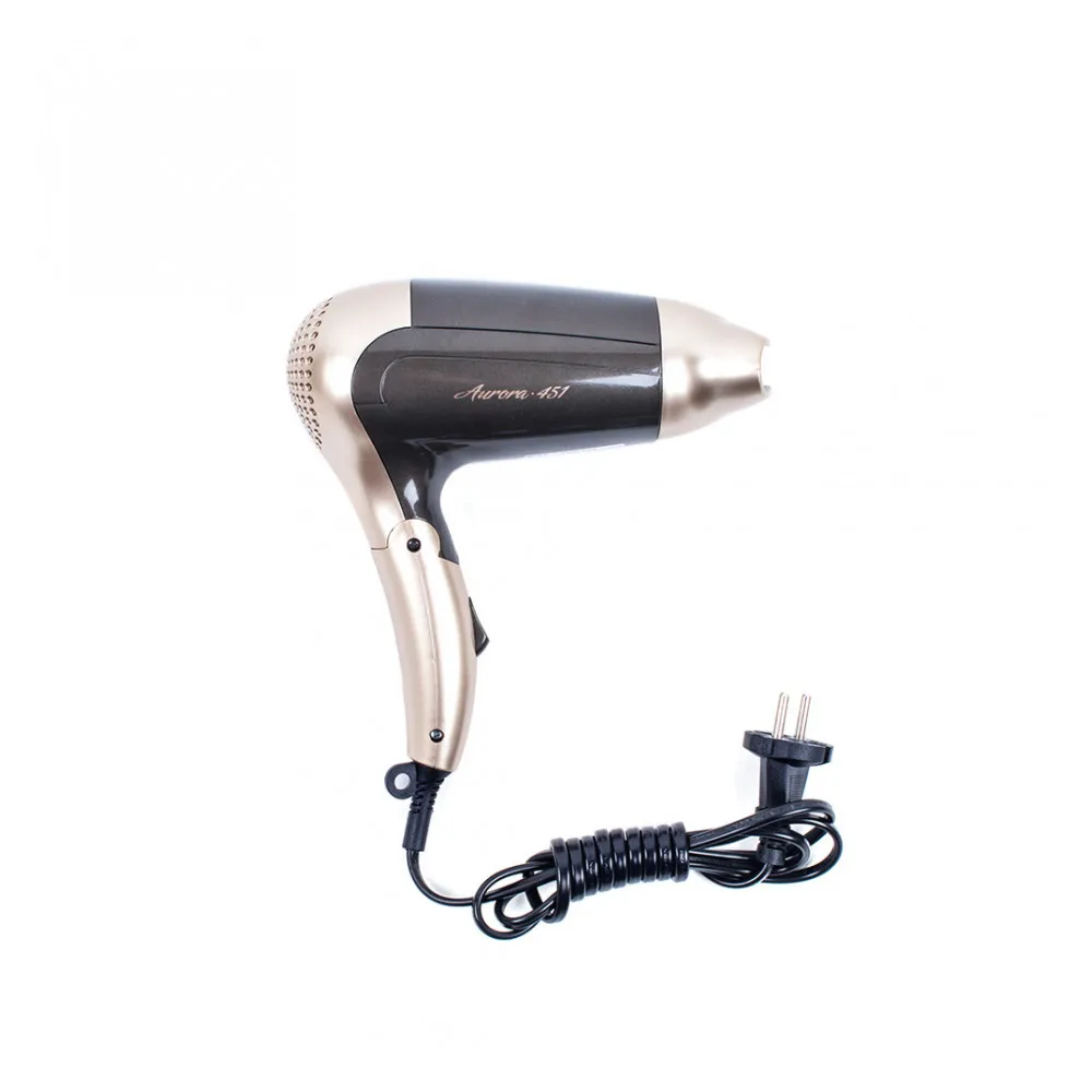 Компактная модель, выполненная в сочетании черного и золотистого цветов, имеет мощность 2000 Вт и использует два режима нагрева, а также две скорости потока воздуха. Это позволит бережно сушить волосы, не допуская их повреждения.